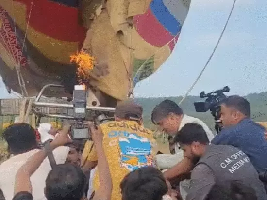 सीएम मोहन यादव के हॉट एयर बैलून में आग लगी:मंदसौर में हवा की रफ्तार ज्यादा होने से उड़ नहीं सका; सुरक्षाकर्मियों ने संभाली ट्रॉली