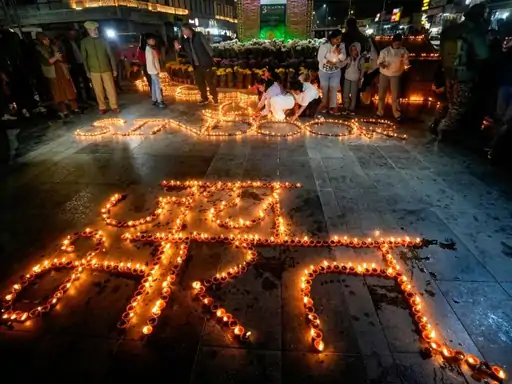 कोलकाता के पंडालों में काली पूजा करके दिवाली मनाई गई। भारत-बांग्लादेश बॉर्डर पर तैनात जवानों ने बॉर्डर के तारों पर मोमबत्ती सजाई। वहीं, श्रीनगर के लाल चौक पर दीयों से ऑपरेशन सिंदूर लिखा गया। मुंबई में श्री समर्थ व्यायाम मंदिर के स्टूडेंट्स ने मल्लखंभ पर प्रदर्शन किया।