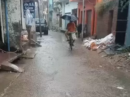 यूपी के 10 जिलों में बारिश...काशी में अक्टूबर सबसे ठंडा:होर्डिंग को बाइक सवारों ने बनाई छतरी, फसलें डूबीं, गलियों में भरा पान